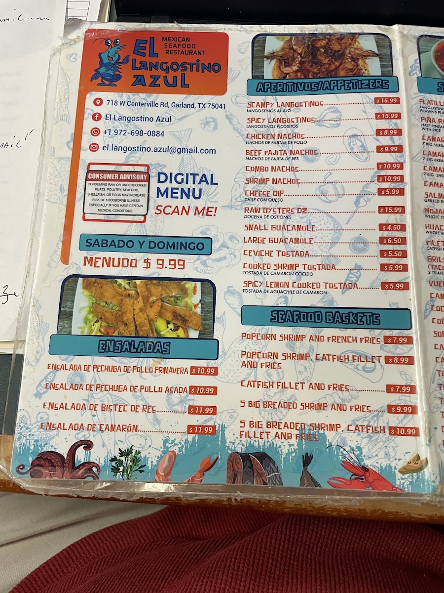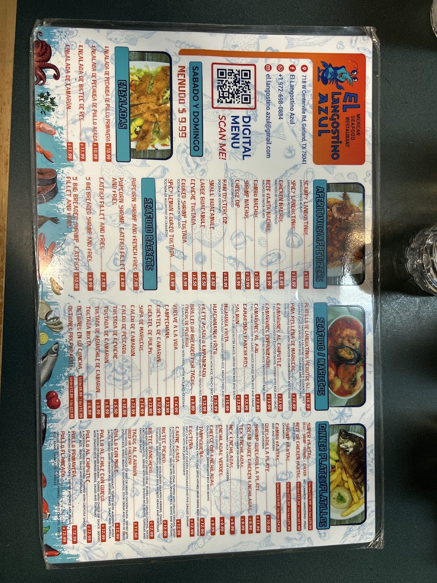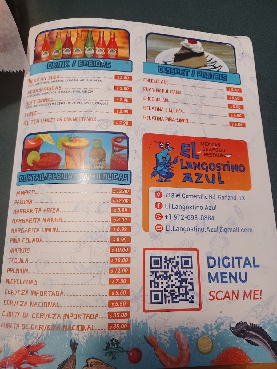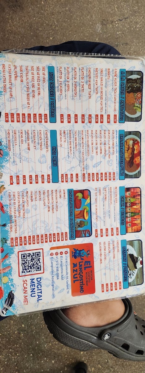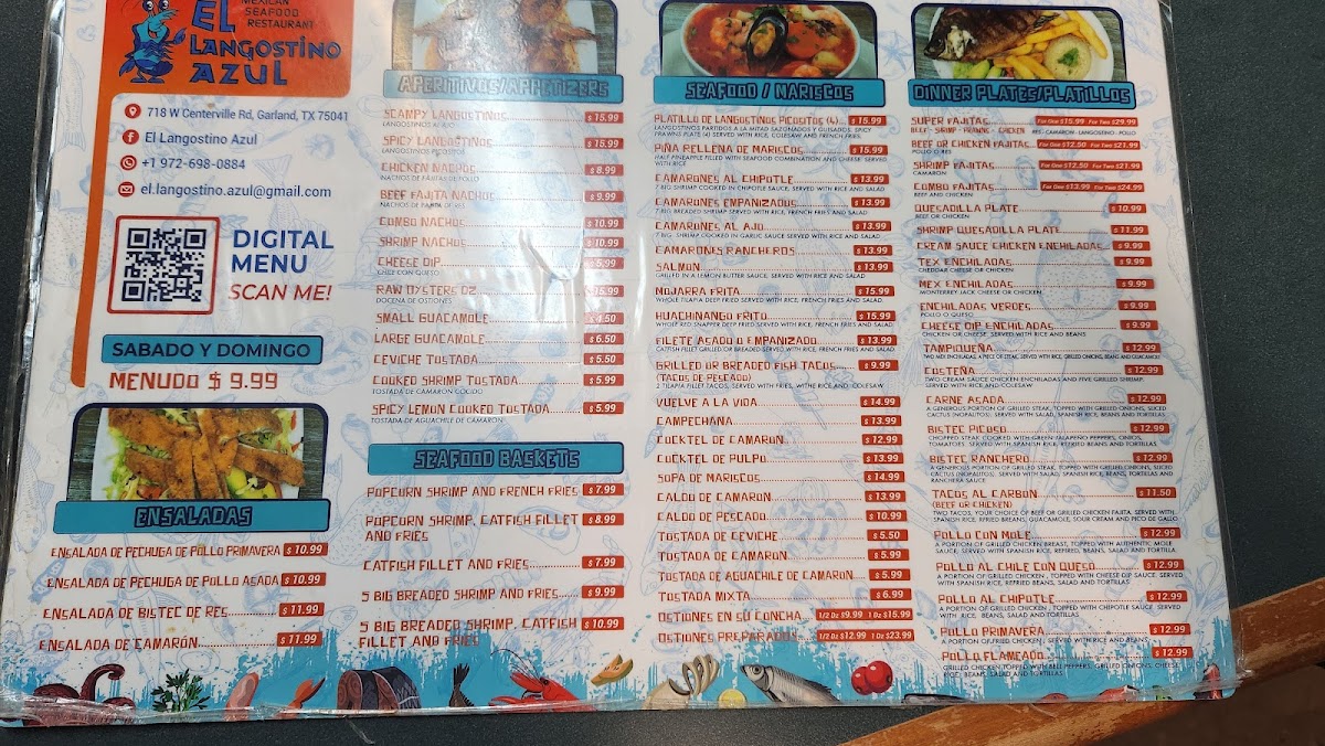 The menu at El Langostino Azul offers a warm and inviting selection of classic Mexican and seafood dishes, perfect for relaxed lunches, casual dinners, or weekend family meals. It’s a straightforward, approachable spread that blends comforting flavors with fresh, coastal influences.